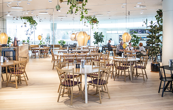 ARoS Café på niveau 4 har altid åbent i museets åbningstid. I hverdagene kan du nyde morgenmad, frokost eller en varm ret om aftenen. I weekenden serveres der brunch.