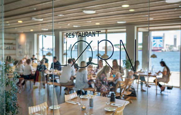 Du får også Aalborgs bedste udsigt, hvor du kan følge med i livet på fjorden med sejlbåde, delfiner, paddleboards og bølgerne på vandet.